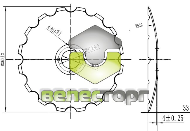 | Параметры | Ø360х4x45 (4xØ11-Ø87) |